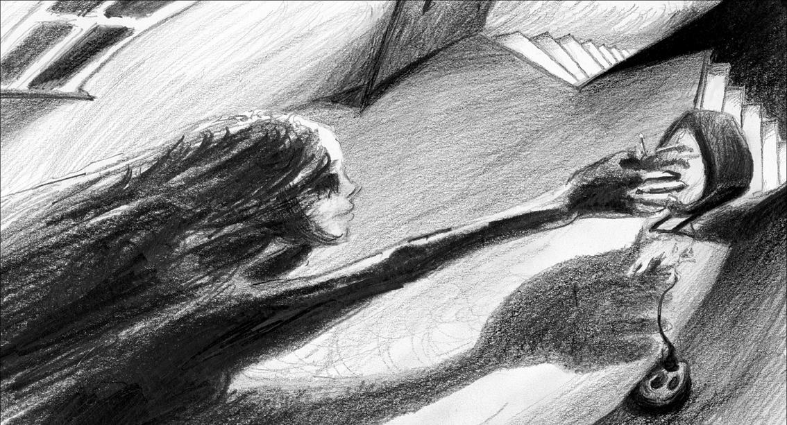 kurzes leben ist ein gezeichneter Film. Jede der Zeichnungen ist komplex und fein gearbeitet, ein kleines Meisterwerk. In der Folge ergeben sich überraschende Perspektivenverschiebungen, Metamorphosen und Lichtsituationswechsel, die von einem Zustand in den anderen hineinfinden, im Einklang mit der psychologischen Bewegung im Film. Der Strich umreißt die Figuren, das Hell-Dunkel umfließt die Räume, seine Dynamik treibt die Handlung voran, als wäre es an die Stelle der Zeit getreten - eine sichtbar gemachte fließende Zeit aus Graphit.