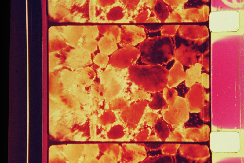 Ruby Skin bildet eine Art filmischer Rache für zahllose Schulstunden in den USA, in denen man hölzernen Lehrfilmen ausgeliefert war: ein anarchistischer Impuls, Unsinn auf 16mm zu stiften. Als Basis diente ein über die Jahre stark geröteter Lehrfilm über "kreatives Schreiben", der in kleinste Fragmente zerlegt wurde. So gerät das, was uns die Stimme im Off zu erzählen hat, zu einer bunt schillernden Kakophonie, in deren Lücken lyrische Funken glimmen.
