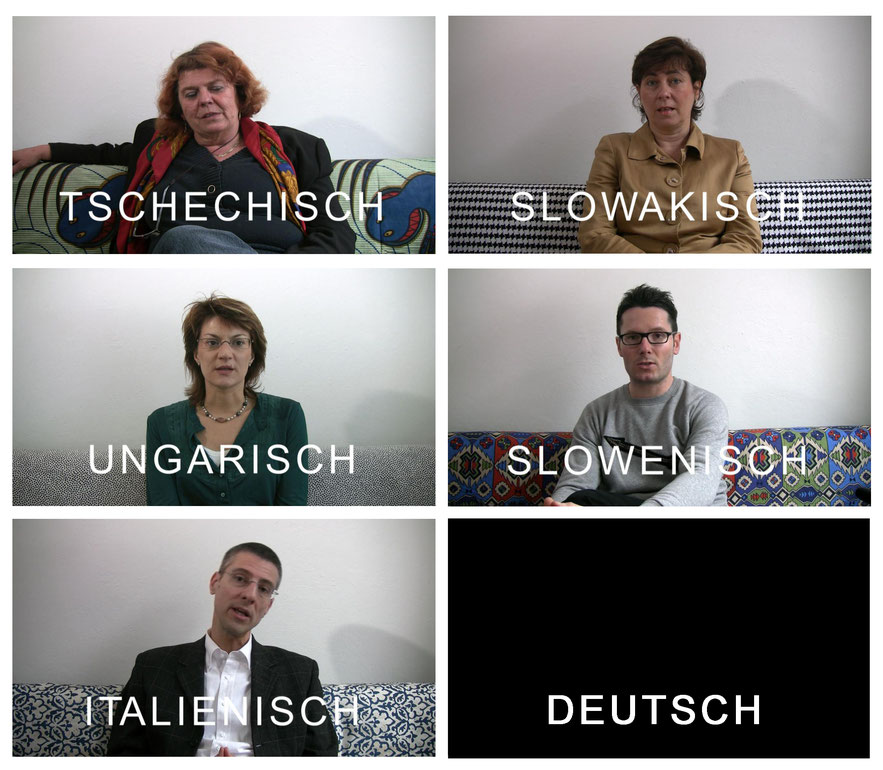 Mal behauptete ein heimischer Politiker rechter Gesinnung, diffamierende Tendenzen im öffentlich-rechtlichen Fernsehen ausgemacht zu haben: Ein „Sieg heil“ sei in dokumentarische Bilder und Töne hinein manipuliert worden. Gut möglich, dass der gute Mann endgültig nervös wird, wenn er in Gerda Lampalzers Audiovision TRANSFORMATION Sätze hört wie „Rostbraten mit Most, das ist kosmopolitisch“, Sätze, die so ganz gewiss niemand gesagt haben kann, oder richtiger: Natürlich könnte man sie gesagt haben, aber die tschechischen, slowakischen, ungarischen, slowenischen, italienischen Gegenüber, sie haben solche Sätze – „Du siehst mehr klassisch aus“ – ganz gewiss so nie gesagt. Lampalzer: „Die Ausgangstexte werden jeweils zu deutsch umgeschnitten. Diese deutschen Texte haben eine vom Ausgangstext völlig unabhängige, neue Bedeutung. Von mir unabhängig ist diese Bedeutung allerdings nicht. Ähnlich der Technik des ,Hineinsehens’ von Bildern in unregelmäßige Strukturen (Wolken, Mauern, Steine, etc.), die man bereits aus der Renaissancemalerei kennt, bringt mich die lautliche Struktur zu bestimmten Assoziationen und damit zu neuen Texten.“