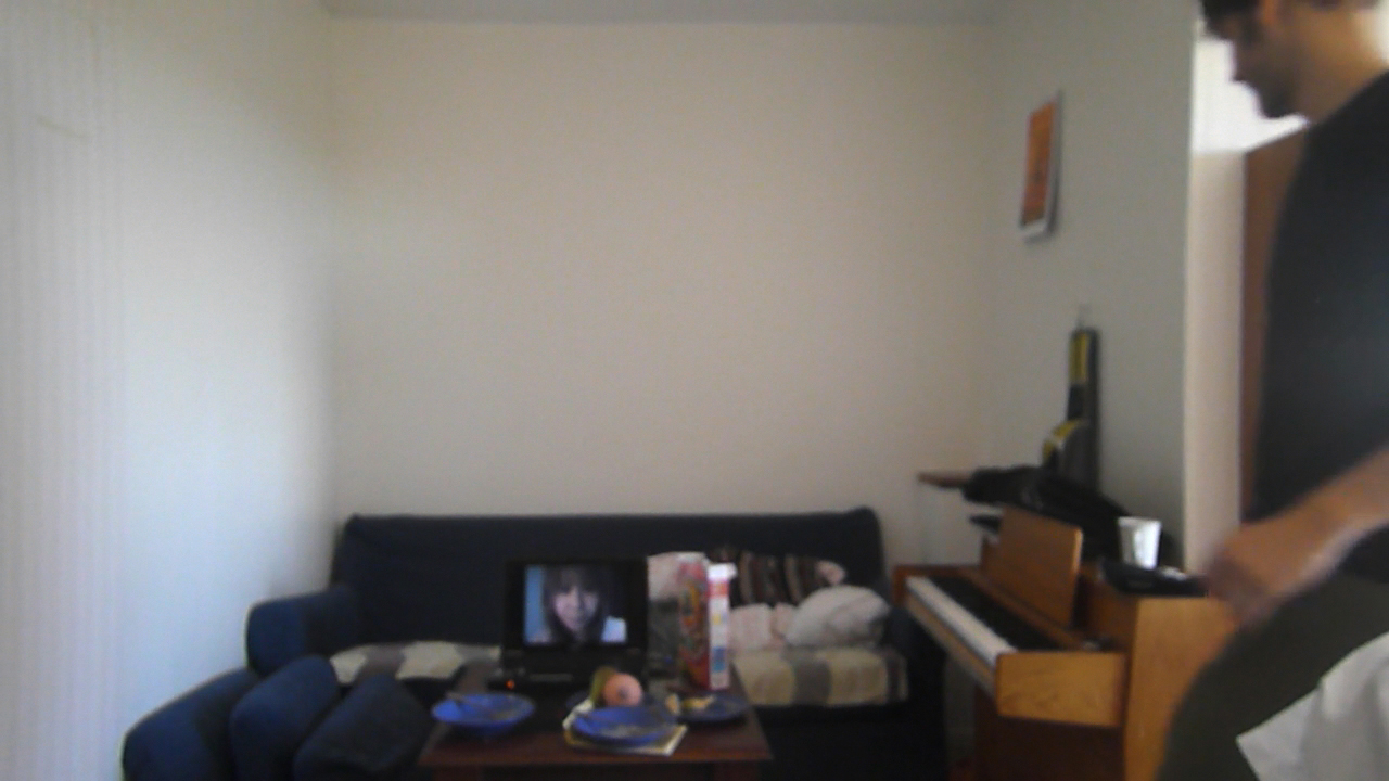 Das Setting ist denkbar einfach, aber schön gewählt: In einer Raumnische steht ein mit Polster beladenes blaues Sofa mitsamt einem kleinen Couchtisch davor. Auf diesem ist ein laufender TV-Monitor Richtung Kamera so platziert, dass eine sprechende Asiatin direkt mit den BetrachterInnen kommuniziert. Was sie sagt, versteht man nicht. Rechts davon, entlang einer Seitenwand gestellt, befindet sich ein Piano, der eigentliche Schauplatz der nur knapp eineinhalbminütigen Performance.