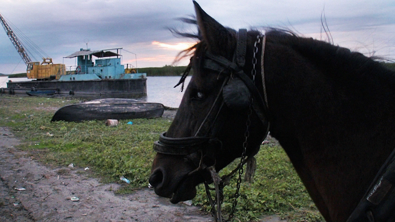 Die Zeit der Postkarten ist abgelaufen. Die Karte als buchstäblicher Ausdruck des Schönen und Fremden ist zu einem Anachronismus geworden, den sich nur leistet, wer es nicht besonders eilig hat. Insofern korrespondiert auch das erste Bild in Postcard from Somova, Romania mit den darauf folgenden Aufnahmen des Films: Zunächst sieht man eine Uhr, die nicht wie bei Salvador Dalí zerfließt, sondern zu den Klängen von Ralph Vaughan Williams’ „Partita für doppeltes Streichorchester“ in Stücke zerbrochen auf der Erde liegt. Es folgen Bilder von einem Ort, an dem tatsächlich die Zeit stehengeblieben zu sein scheint: der Hafen von Somova am rumänischen Donaudelta. Hunde und Katzen streunen auf der Suche nach Nahrung am Flussufer entlang; Ziegen grasen auf einer Wiese und behaupten ihr Revier in spielerischem Kampf; ein an einem Holzwagen angeschirrtes Pferd frisst Heu. Wenn im Dokumentarfilm oft von „Ausgrabung“ die Rede ist, so macht Andreas Horvath hier genau das Gegenteil. Man spürt deutlich, wie die Kamera sich in dem schmalen Uferstreifen zwischen Wasser, Wiese und Wald eingräbt und mit höchster Aufmerksamkeit jede kleinste Bewegung registriert, während der Wind unablässig in den Baumkronen rauscht. Was der Fluss an Unrat hier angeschwemmt hat, kommt aus einer anderen Welt und so schnell nicht mehr weg. Wie die zerbrochene Uhr ist auch der achtlos weggeworfene Müll längst Teil der Szenerie geworden. Beinahe unmerklich geht der Nachmittag in den Abend über, als zufällig zwei Fischer mit einem kleinen Boot anlegen und dem Pferdefuhrwerk davonfahren. Bei Einbruch der Nacht bleiben nur die Ziegen zurück. Indem Postcard from Somova, Romania vom scheinbar nutzlosen Warten erzählt, erreicht er in der Beobachtung dieses Zustands höchste Qualität. Eine Momentaufnahme von dauerhafter Schönheit.