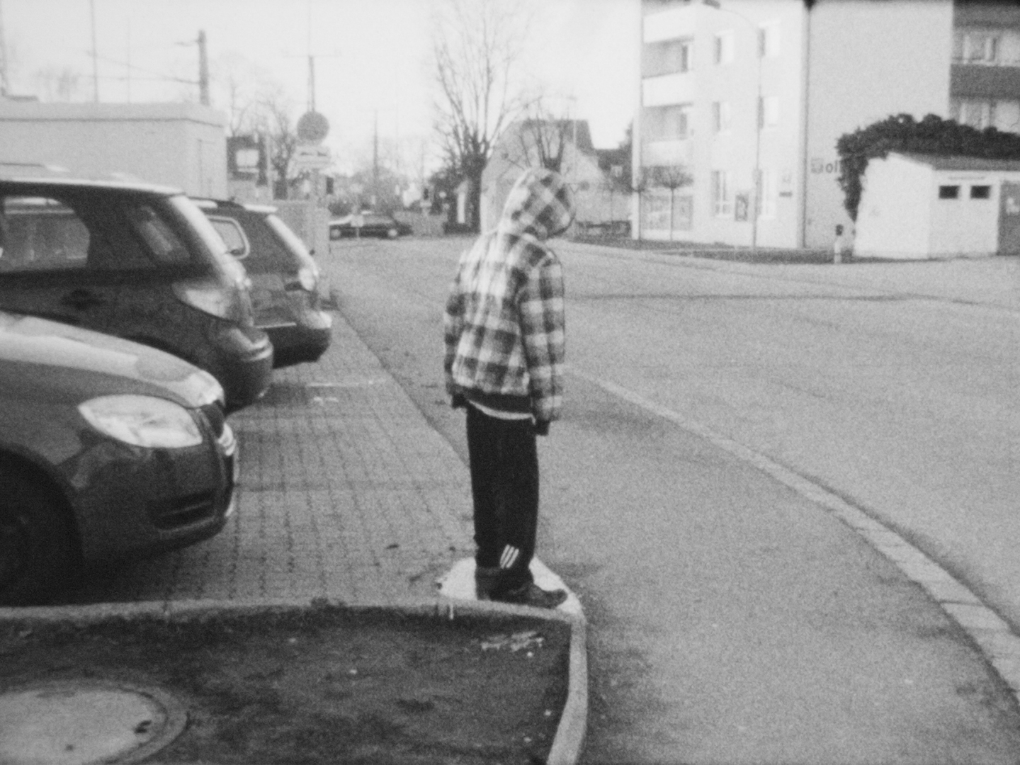 Im ersten Kapitel des Films ist der Flughafen ihr Aufenthaltsort. Dort, wo die Sehnsucht nach der Ferne und dem Anderen, so schön zu fantasieren ist, lehnen sie am Geländer der Hochgarage und blicken nach unten, spielen fangen und die junge Frau posiert im Schattenspiel der Betonwüste. Sie wirkt älter als er, nachdenklicher, dem Erwachsensein näher. Beide scheinen sie diesen anonymen Transitraum als Ort ihrer Freizeit und Neugierde zu nützen, als Ort von unbeaufsichtigten Bewegungen.
