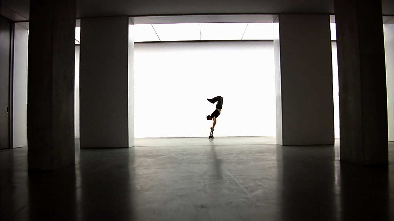 Gemeinhin ist das Berühren von Kunstgegenständen in einem Ausstellungsraum nicht erlaubt. Nicht so in Kay Walkowiaks Minimal Vandalism, wo dieses Verbot geradezu mit Füßen getreten wird. Das Setting ist jenes der Generali Foundation in Wien, Inbegriff eines modernistischen Ausstellungsbaus, der – als neutrale, White-Cube-artige Hülle – in den Akt der Kunstbetrachtung selbst so wenig wie möglich intervenieren soll. Wäre da nicht die schlauchartige Raumflucht mit der mächtigen Betonwand in der Mitte, entlang der in Minimal Vandalism ein Parcours aus minimalistischen Skulpturen aufgebaut ist. Und ein Parcours ist es führwahr, denn nach kurzer Exposition – die ruckartig bewegte Kamera lässt schon Böses erahnen – wird hier eine gänzlich unerwartete Performance entfacht. Kurz sieht man, in einer der wenigen ruhenden Einstellungen, eine Überwachungskamera, und schon geht das Schauspiel los: Aus der Tiefe des Raumes kommend, nimmt ein Skateboarder (Kilian Martin) auf drei übereinander gestapelten Brettern Anlauf, um die Skulpturen einem Härte- bzw. Geschicklichkeitstest zu unterziehen. Der „Performer“ bezieht die Objekte, Kunst hin oder her, unerbittlich in seine Akrobatik mit ein, gleitet an ihnen hoch, schlittert über ihre Oberflächen oder überspringt sie mit Bravour. Inszeniert ist das ganze mit wuchtig hallendem Sound, was die stille Anmutung der Minimalskulpturen noch zusätzlich bricht. In dynamischem Einstellungswechsel sieht man nach jedem ausgeführten Akt in Großaufnahme den Schaden, der so angerichtet wurde. Aber auch hier scheint es, als würden die Objekte durch die bizarren Kratzer, Schleifspuren oder abstehenden Metallspäne mehr zum Leben erweckt als dass sie dadurch ruiniert würden. Der Raum wird vom Blick her mehrfach der milchgläsernen Decke und dem verschlierten Magnesit-Estrich entlang durchmessen – die kurzen, abrupten Skateboard-Fahrten enden aber stets dort, wo ihr eigentlicher Adressat liegt: bei den abstrakten Kunstgegenständen, die so mit sportiver Vehemenz aus ihrem kontemplativen Schlaf gerüttelt werden.