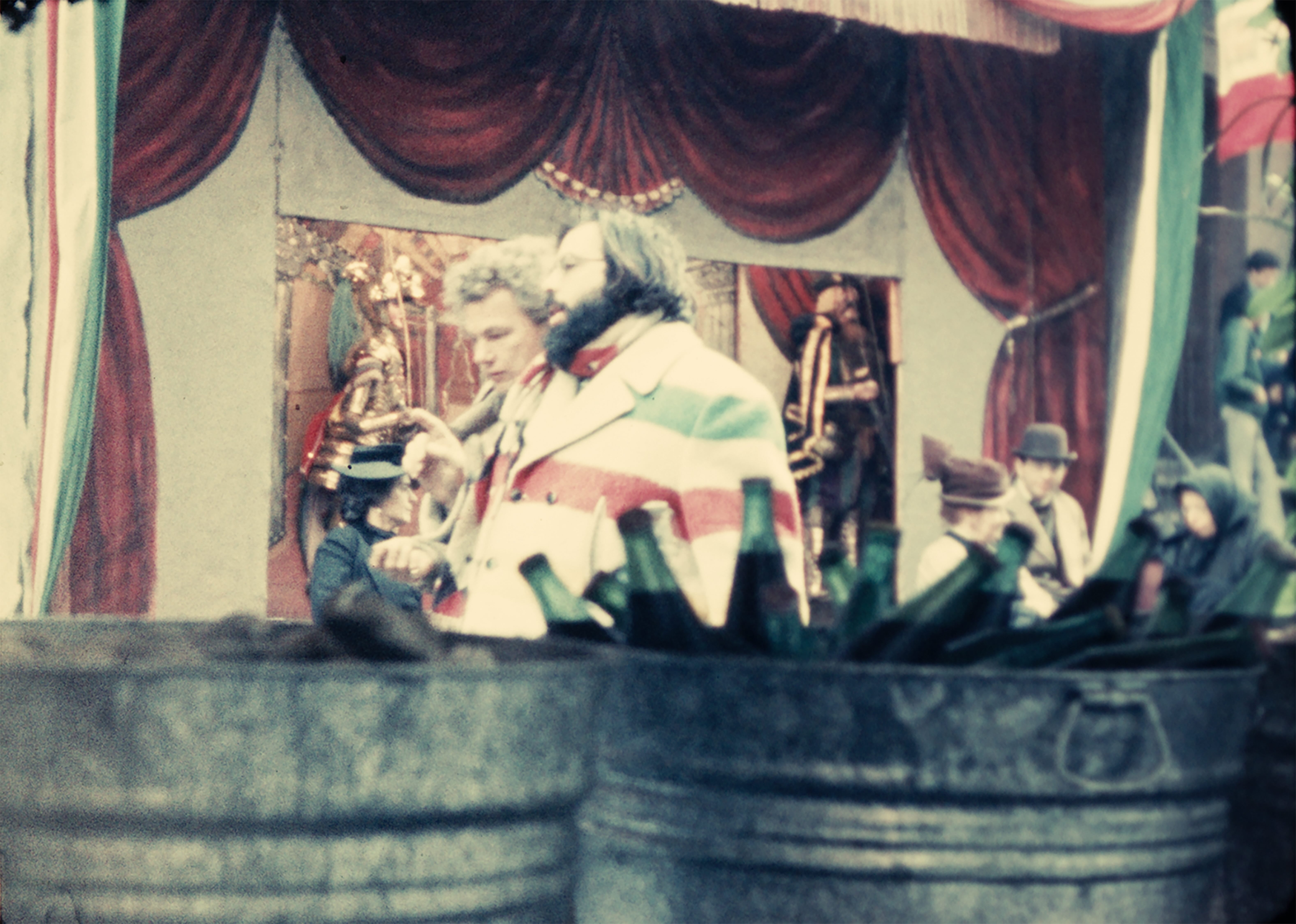 Godfather I, II und III, eine Reihe von Experimentalfilmen, die 1974 auf dem Set von Francis Ford Coppolas Filmklassiker The Godfather: Part 2 (Der Pate 2) gedreht wurden, sind poetische dokumentarische Artefakte aus dem Viertel, in dem Lassnig in New York lebte. Die Dreharbeiten für den Monumentalfilm fanden in unmittelbarer Nähe ihres Atelier in der Avenue B statt; Lassnig folgte den Schauspielern und der Crew mehrere Tage lang mit ihrer 8-mm-Kamera durch die Straßen, um ihre eigene Sicht auf Coppolas Kultfilm wiederzugeben, einen weiblichen Blick auf Hollywoods legendärste Darstellung des Patriarchats zu richten und hinter die Kulissen eines Filmgroßproiekts schauen zu lassen. Diese Filme zeigen, wie Lassnig mit Technik experimentiert, mit direkt in der Kamera erstellten Doppelbelichtungen, um Zeit und Raum komplexer zu gestalten. In Verbindung mit der szenografischen Gestaltung, die die Lower East Side wie in den 1940ern aussehen ließ, erweitert Lassnig die Dimensionen von Zeit und Raum. (Jocelyn Miller)