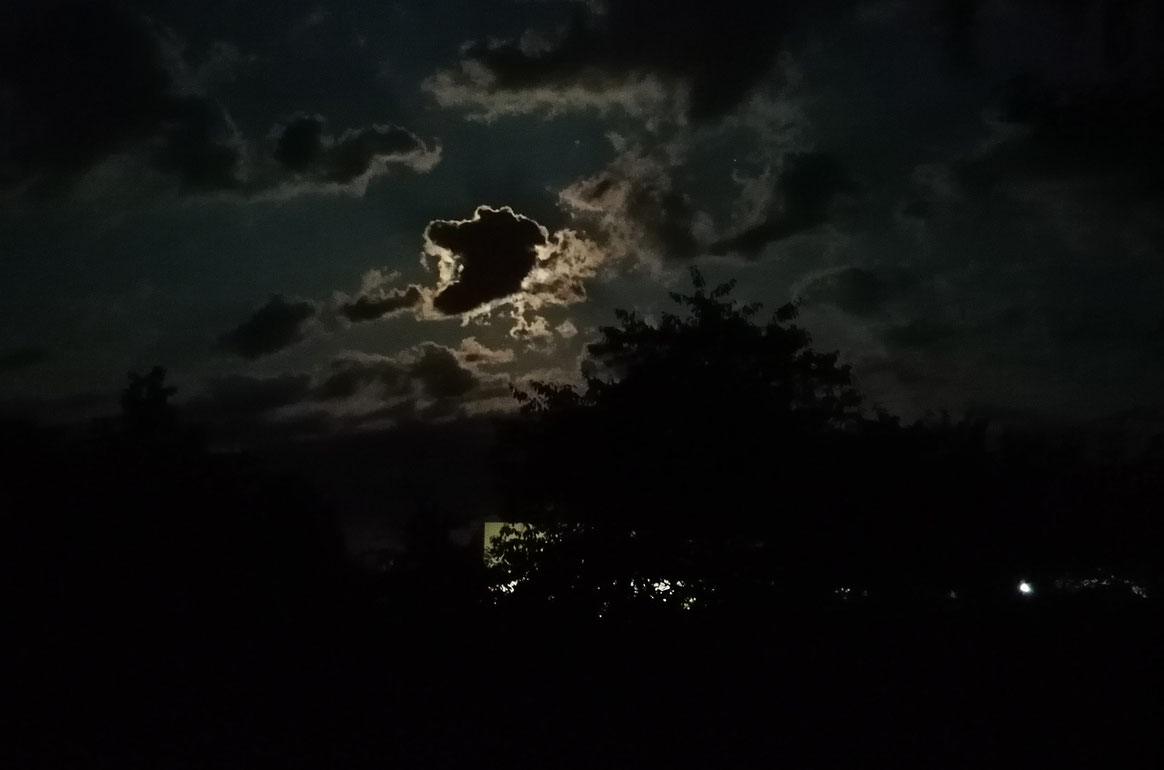 Vollmondnacht, Totale: Wenn in der einzigen, unbewegten Einstellung des Films der langsame Zug der Wolken den Blick auf den Mond öffnet und wieder verstellt, erwartet die filmhistorisch geschulte Betrachterin womöglich den Schnitt durch ihr eigenes Auge, den Luis Buñuel in Un chien andalou als grafische Entsprechung des Naturschauspiels in Szene setzt. Bei Sasha Pirker gibt es anders als bei Buñuels surrealistischer Augenattacke keinen Schnitt und keinen Schock, sondern sie beschwört die vielgestaltige Mythologie des Mondes, um sie gleichzeitig in Bann zu halten. Sich der lunaren Affizierung hingeben, ohne zum Lunatic zu werden – so könnte das poetische Programm des Films vielleicht beschrieben werden. In drei Teilen entfaltet sich im Gravitationszentrum des Mondes eine Meditation über den künstlerischen Schaffensprozess, der von der Sprache über die Stimme zur Musik moduliert: In Teil 1 kommt das „Me“ der Filmemacherin in einem langen Voice Over selbst zur Sprache als eine filmische Subjektivität, die im Angesicht des Mondes über mögliche, geplante und zukünftige Filme reflektiert und dabei in der Schwebe lässt, ob die Totale des Mondes nun Teil dieses kommenden Films ist, oder nur kreative Inspirationsquelle. In Teil 2 verkündet ein Zwischentitel das vorläufige Scheitern dieses Filmprojekts, aber diese Negation des angekündigten Films (das „Ma“ bezieht sich auf das japanische Konzept eines negativen, leeren Raums) positiviert sich gleichzeitig als derselbe Mondfilm, den wir immer noch fasziniert betrachten. Doch etwas ist mit der Stimme passiert, deren Tönung durch eine Erkältung rauer geworden ist, so dass wir die „Körnung der Stimme“ (Roland Barthes) in ihrer Körperlichkeit hören. In der assoziativen Logik der Alliteration folgt nach „Me“ and „Ma“ nun das wörtliche „Moon“ in der akustischen Gestalt eines mitreißenden Musiktracks, dessen Dynamik zu der Stasis des Bildes eine extreme Spannung aufbaut. Nun ist der unvollendete Film vielleicht doch vollendet – als befreiter Tanz unterm Mond. (Sulgi Lie)
