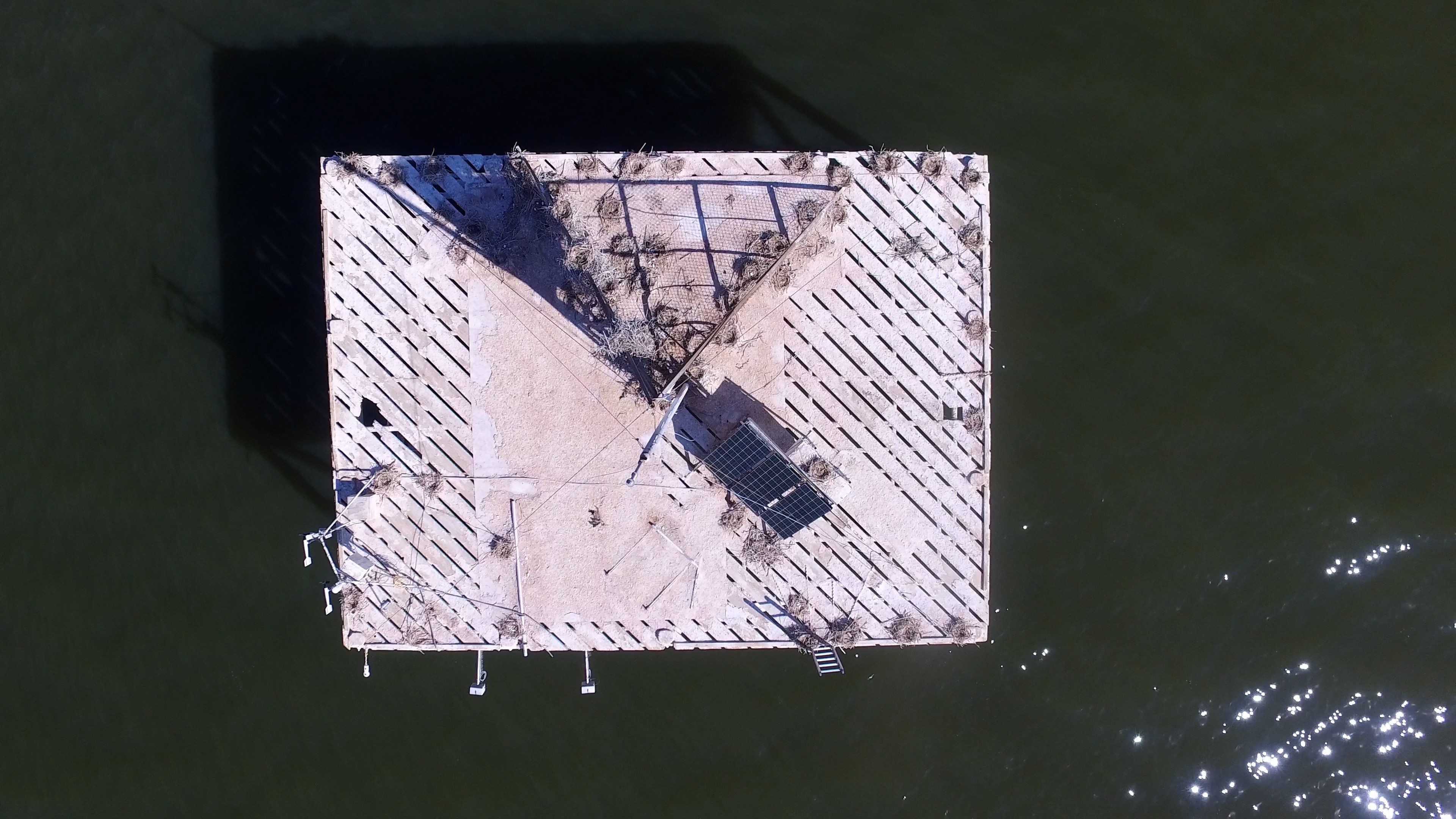 Die Oberfläche des Salton Sea reflektiert das gleißende Sonnenlicht. Sedimente färben das Wasser mal grünlich, am Rande des Bildes bald bläulich. Die Kamera, die dieses sanfte Flackern und Fließen festhält, schwebt weit über einem weißen Rechteck. Auf diese Struktur inmitten des zunächst nur durch die Kadrage begrenzten Gewässers bewegt sie sich langsam zu, bevor sie sich in sachte arrangierten Einstellungen auf der kleinen, verwitterten Plattform umsieht.