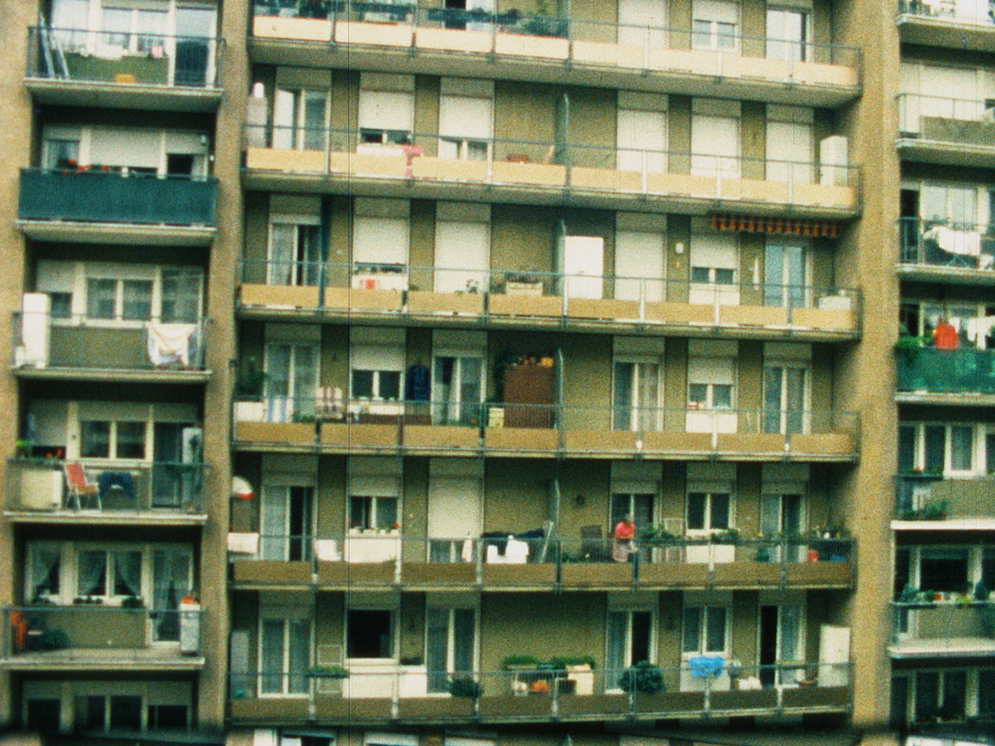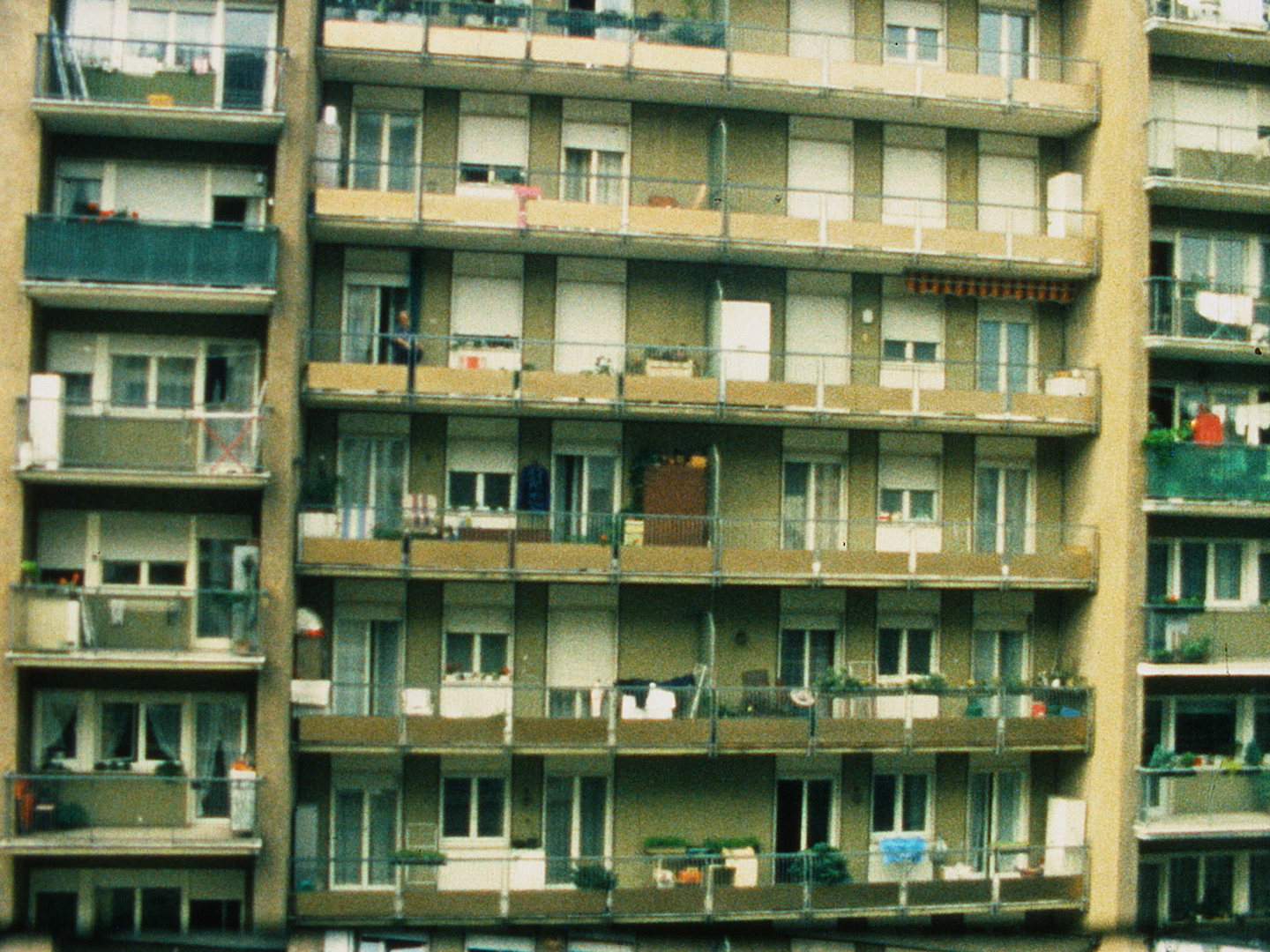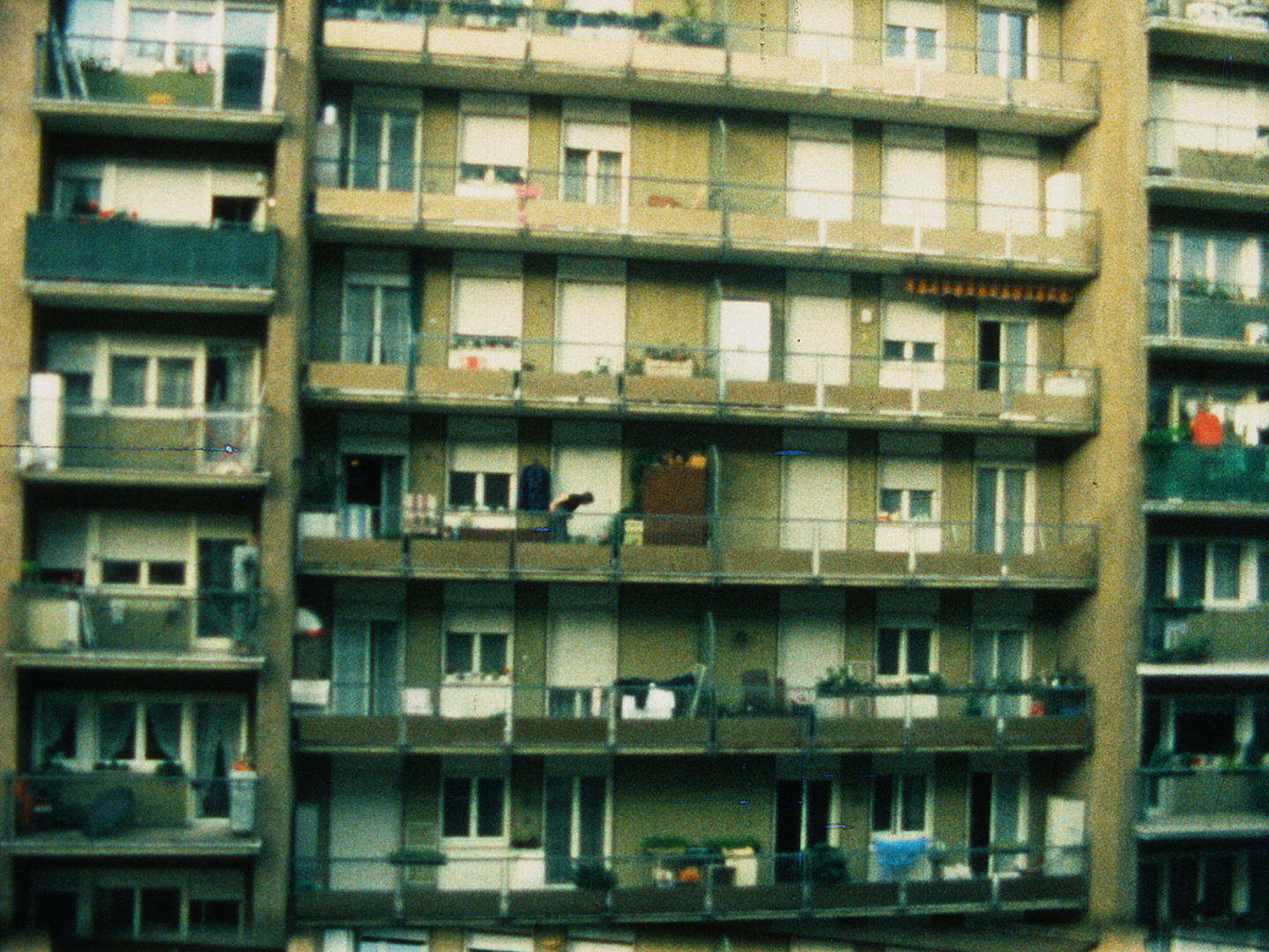Dieser Zeitrafferfilm zeigt die Fassade eines Wohnhauses in Bozen und macht deutlich, dass die bescheidenen Balkone vor allem von Frauen zum Wäschetrocknen genutzt werden.