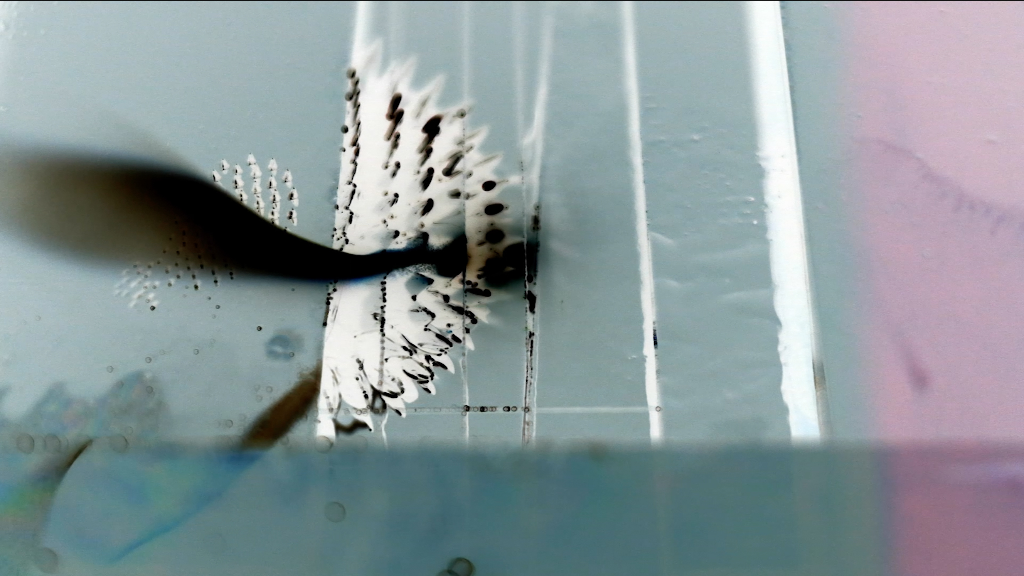 Bis zur Renaissance waren Magie und Wissenschaft keine getrennten Disziplinen, sondern im Feld der Alchemie eine untrennbare Einheit. Der antiken Theorie folgend ging man davon aus, dass die Augen „Sehstrahlen“ aussenden, die visuelle Wahrnehmung also ein aktiver und kein passiver Prozess ist, was durch eine historische Grafik am Beginn des Videos verdeutlicht wird. Eldarbs Vorgehensweise hat etwas zwingend Alchemistisches an sich. Er generiert hochästhetische, magische Welten, indem er mit verschiedenen chemischen Stoffen experimentiert und mit der Kamera festhält, welche Farb- und Formenspiele sich daraus ergeben. Seine elaborierten, rein analog gefertigten Versuchsanordnungen dienen ausschließlich dem Zweck, überraschende und faszinierende visuelle Attraktionen hervorzurufen.