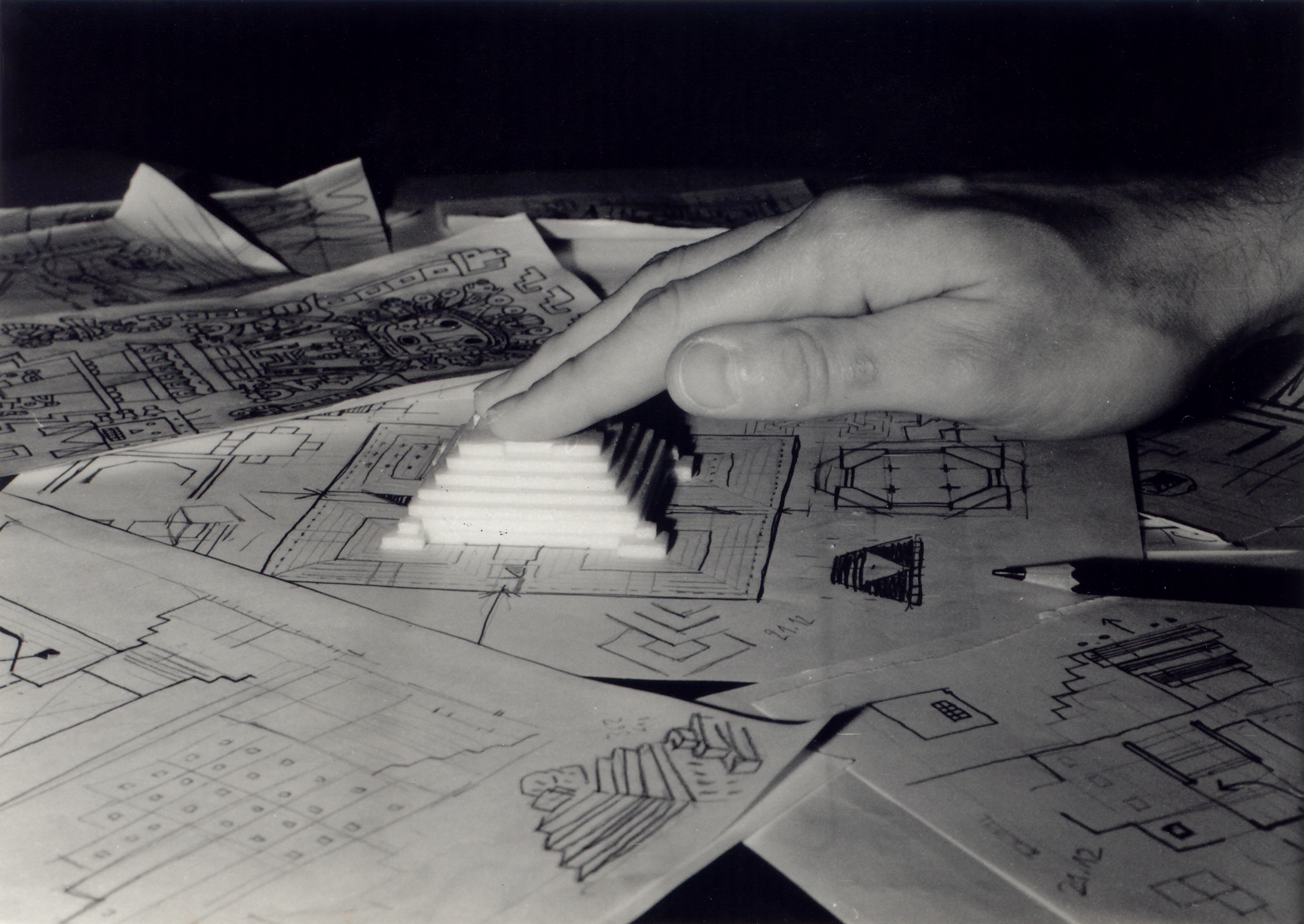 Für ihren Film Der Mensch mit den modernen Nerven stellten sie ein Modell nach den Skizzen des Architekten Adolf Loos her, die dieser 1923 für ein Rathausprojekt in Mexiko-City entworfen hatte. Bei dem von Loos geplanten Gebäude handelt es sich um eine Stufenpyramide, die im filmischen Prozess in ein abstraktes Spiel der geometrischen Formen, der Lichter und Schatten gebracht wird, das an bestimmte Filme der 20er Jahre erinnert, etwa an „Orgelstäbe“ von Oskar Fischinger (1923-1927). Über die Animation des Modells weit hinausgehend, beschäftigt sich der Film mit Adolf Loos‘ architektonischen Konzepten zur Fläche und zum Volumen des Raums.