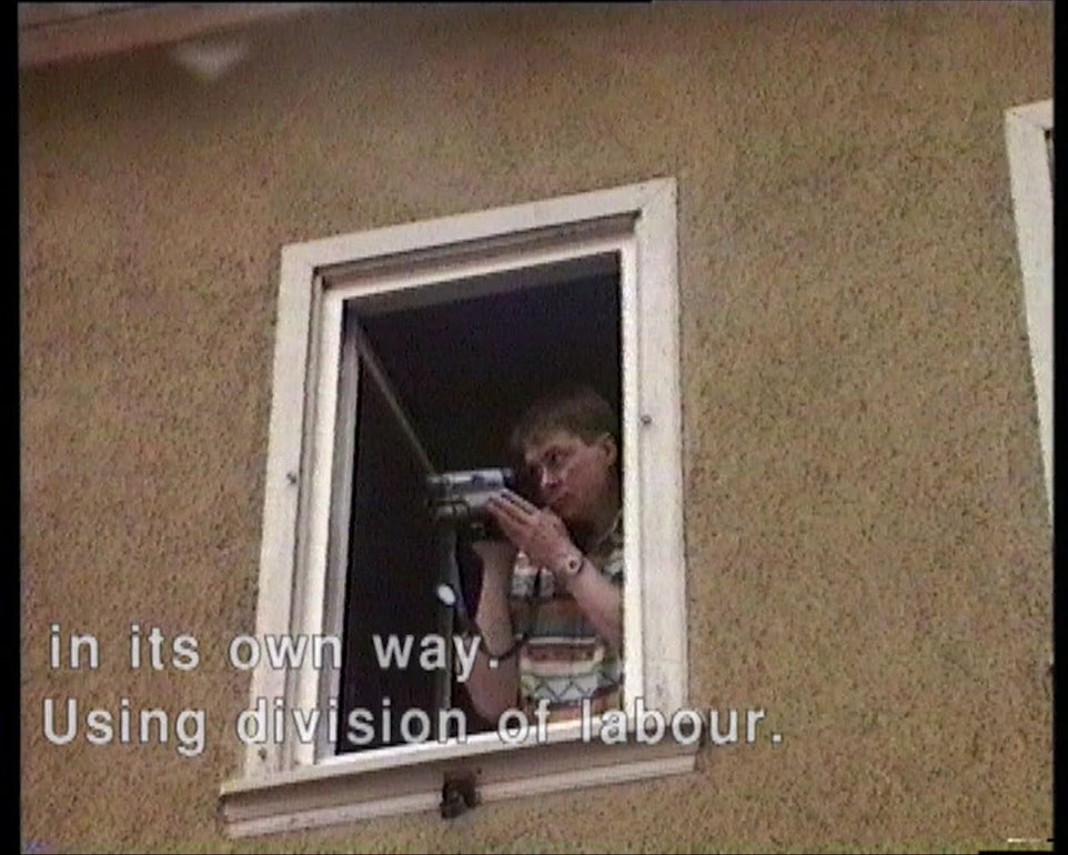 East meets West und vice versa (dazu Schlagermusik), Identitätsdebatten und 13 Methoden unsichtbar zu werden. Im Fokus von Deutschland und das ich steht die Frage nach der nationalen Zugehörigkeit nach der Wende und mit ihr welche Folgen die Wiedervereinigung für die deutsche Identität unter geänderten Rahmenbedingungen hat. Ein „Heimatfilm“ so Steyerl wohl nicht ganz unironisch, der während ihres Dokumentarfilmstudiums entstanden ist, zahlreiche Gespräche und Diskussionen zeugen von diesem Kontext. Die Engführung dissonanter Stimmen, aber auch unterschiedlicher Bildtypen (wie Demonstrationen, Kundgebungen und Staatsbesuche) zeigt sich bereits hier als eines ihrer Markenzeichen. In der Gegenwart unsichtbar zu werden, ein geradezu politischer Akt, erfordert die Größe eines Pixels; – How not to be seen liefert Handlungsanleitungen gegen ein umfassendes Überwachungssystem. (ds)